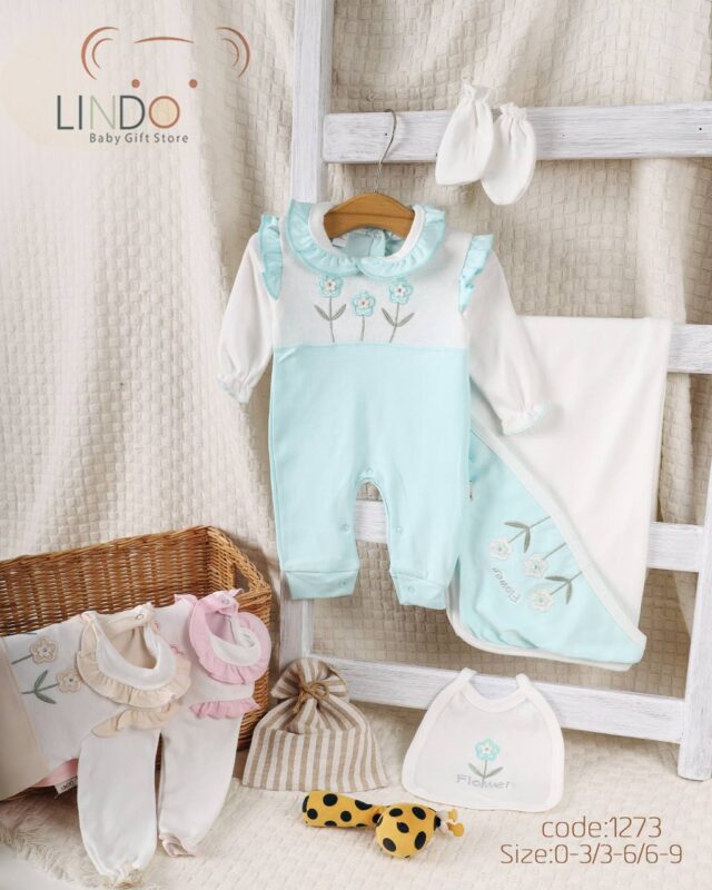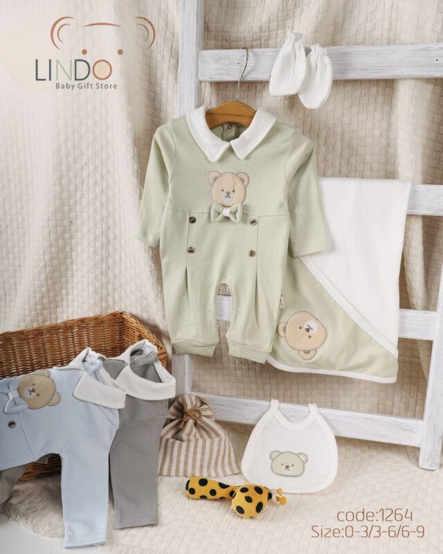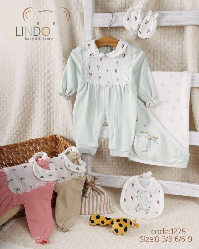 طقم مواليد0-9 كم قطن Lindo 1295