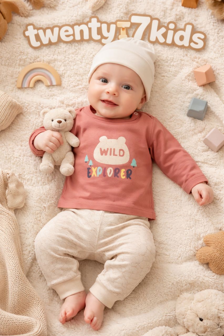 طقم كم خريفى مواليد قطن 3804 بنجور 0-3