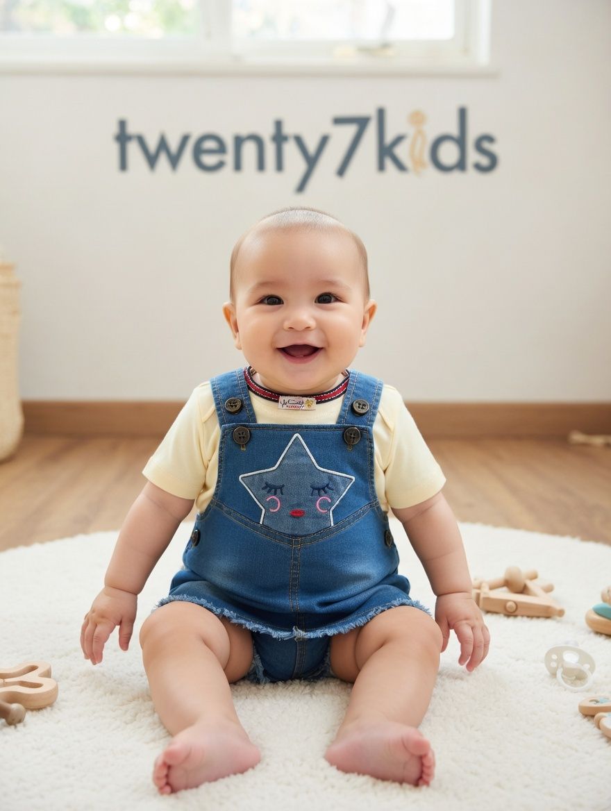 فستان جينز قطن بيبى star مع تى شرت نص كم اصايل