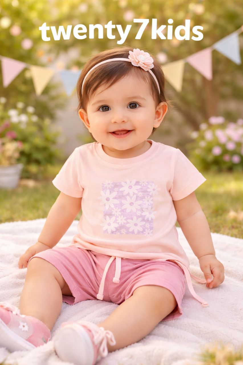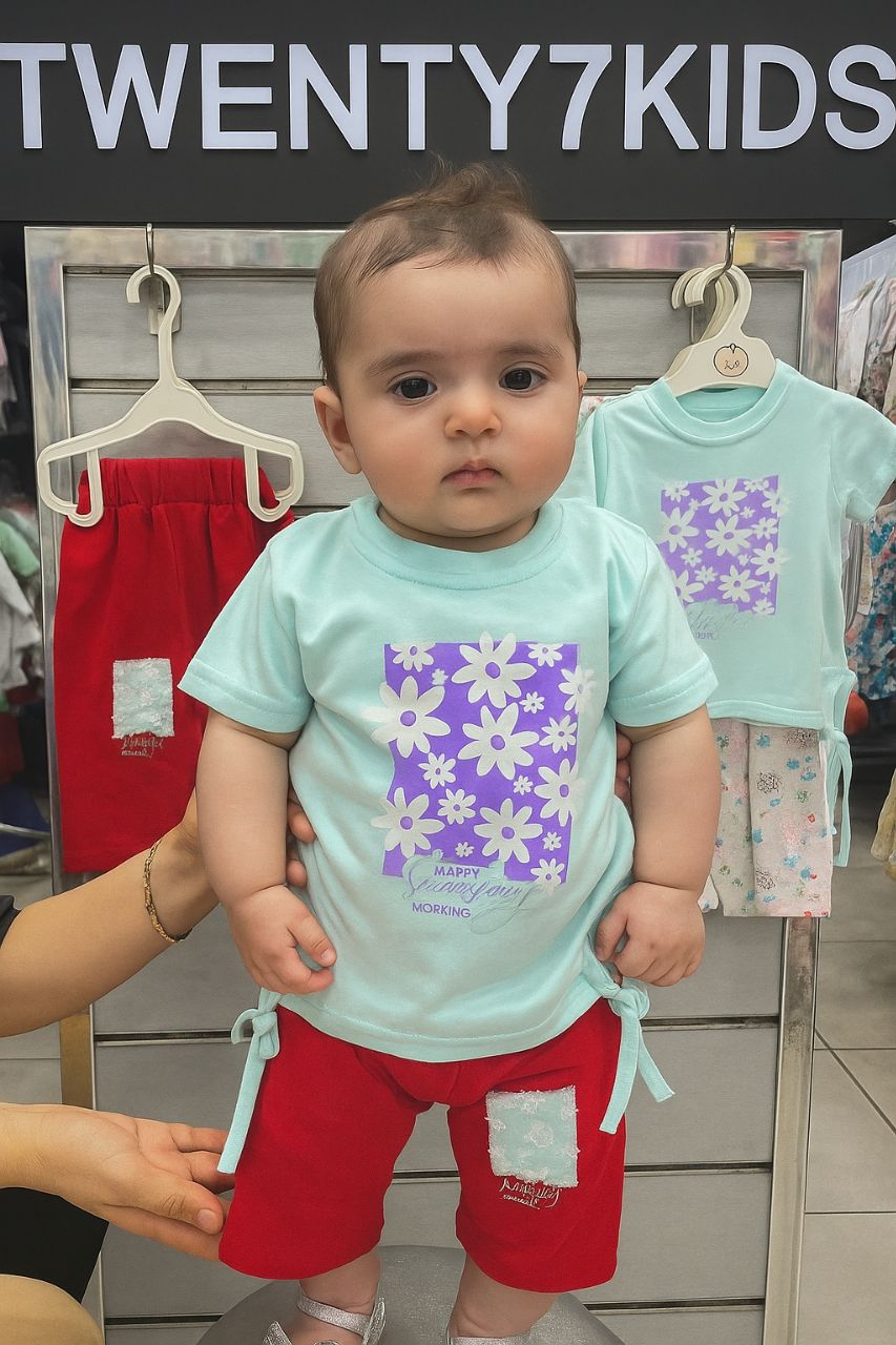 طقم أنيق ومريح مصمم خصيصًا لبناتك في أيام الصيف، مكون من تيشيرت نصف كم مع برمودا بخامة قطن ناعمة على بشرة الأطفال، تمنح إحساسًا بالراحة طوال اليوم.